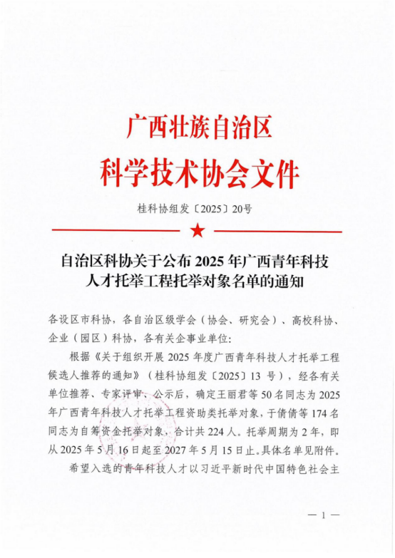 我校2名博士成功入选2025年度广西青年科技人才托举工程