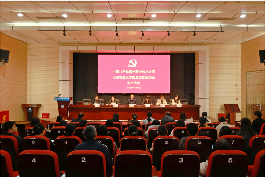 新闻网消息(文/马克思主义学院 刘玉芳 图/党委宣传部 陈晨、马克思主义学院 潘华华)2025年12月5日下午,中国共产党柳州职业技术大学马克思主义学院总支委员会在社湾校区行政楼100报告厅召开党员大会,选举产生马克思主义学院党总支委员会。学校党委书记刘子林,学校组织部部长黄誉,马克思主义学院全体党员参加。会议由马克思主义学院院长、党总支书记景凌凌主持。