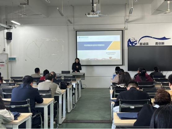 随后,陈芳围绕“守好网络安全责任”这一主题,给教职工进行了网络意识形态专题培训。她指出,网络安全是当前意识形态工作的重要组成部分,教职工在网络空间中必须始终保持高度的政治敏锐性和责任感。她结合实际案例,重点强调了《中华人民共和国计算机信息网络国际联网管理暂行规定》《中华人民共和国网络安全法》《计算机信息网络国际联网安全保护管理办法》以及《中国共产党党员网络行为规定》的相关规定及处罚措施,告诫全体教职工在网络活动中务必严格遵守法律法规,规范自身行为,提高警惕,进一步筑牢网络安全防线,确保学院各项工作平稳有序开展。