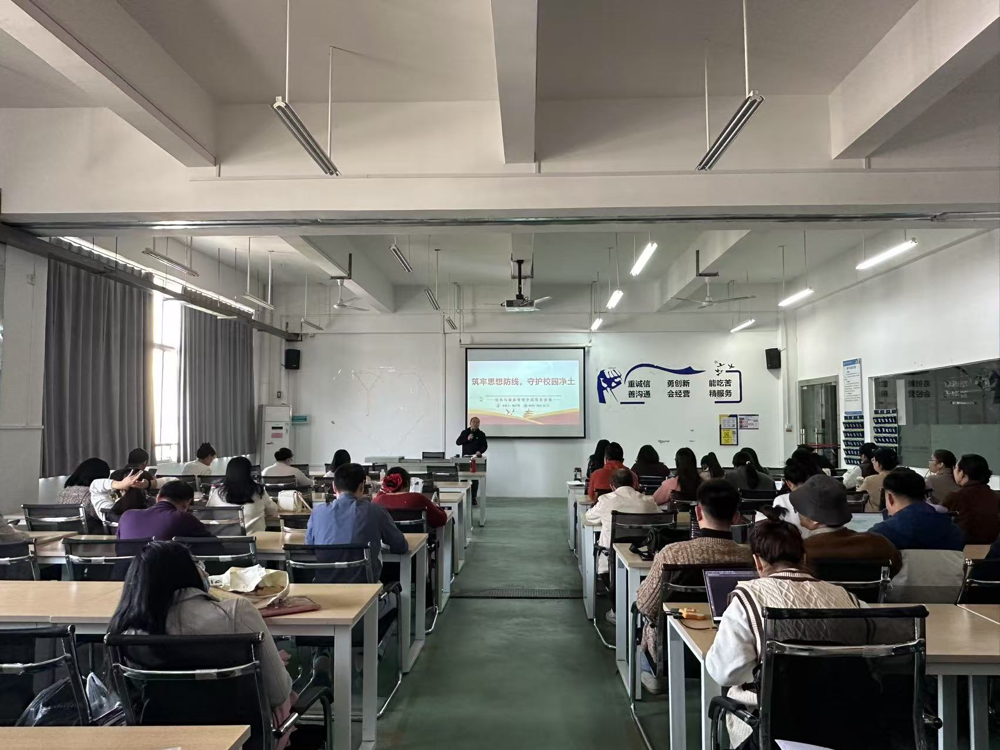 陈月明以《筑牢思想防线,守护校园净土》为主题,为全体教师进行了深入的意识形态教育。他首先概述了当前意识形态领域所面临的挑战,接着利用典型案例进行了警示教育,详细解读了学校关于意识形态工作的相关规章制度,并深入剖析了意识形态工作的重要性和紧迫性。陈月明强调,作为教师,必须始终保持清醒的头脑,不仅要传授知识、培养人才,还要积极引导学生的思想,确保学生能够树立正确的世界观、人生观、价值观。他激励全体教师积极参与意识形态工作,共同促进校园的和谐与稳定。在会议的最后,陈月明还通报了柳州市违反师德师风的典型案例。