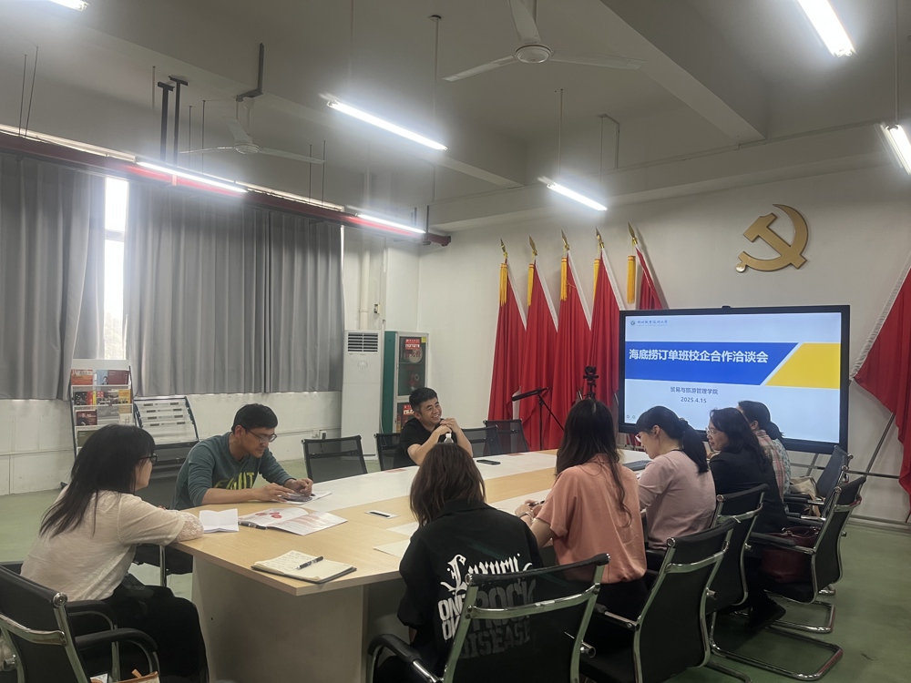 新闻网消息(文/贸易与旅游管理学院 袁晓夏 图/贸易与旅游管理学院 韦孟颖)2025年4月15日,社湾校区崇文楼5楼会议室,知名连锁品牌“海底捞”所属企业——海底捞国际控股有限公司(以下简称“海底捞”)华南区人力资源部经理何锋发来到贸易与旅游管理学院,校企双方围绕校企合作、人才培养、学生实习就业等内容展开洽谈。贸易与旅游管理学院院长杨歌谣、实训管理负责人林翔君、各团队负责人、连锁经营与管理专业骨干教师参与了洽谈。