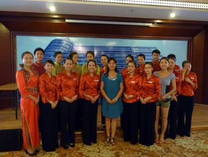 为帮助2011级酒店管理专业学生尽快适应在北京的实习,2012年8月27至31日,在北京采集《餐饮服务与管理》教学资源库图片和视频资料的贸易与旅游管理系谭欣副主任,专门抽出时间率领专业教师一同看望了2011级酒店管理专业实习生。