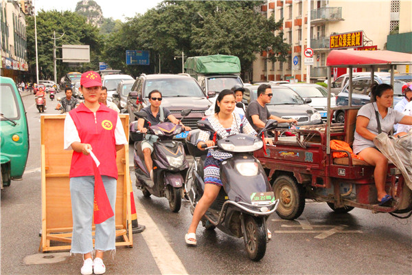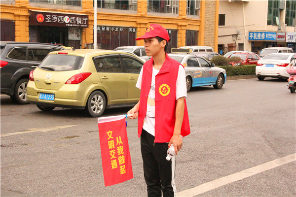 新闻网消息(文、图 贸易与旅游管理学院 /吴鹏 )为全力配合我市“文明创建·助力创城”工作深入开展, 进一步巩固文明交通成果,着力打造柳州有序、安全、文明的城市交通环境,提升我市文明形象,积极参与到柳州市争创第五届文明城市的活动中,践行文明,倡导文明交通。9月25日贸易与旅游管理学院志愿者赴柳州市西江路与屏山大道交界路口开展“文明创建·助力创城”文明交通劝导志愿服务活动。