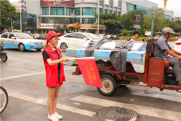 贸易与旅游管理学院志愿者为柳州创城做志愿服务
