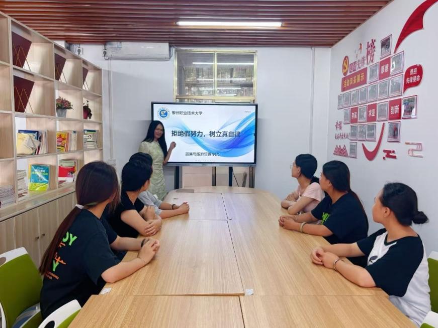 新闻网消息(文/贸易与旅游管理学院 傅才婷 图/贸易与旅游管理学院 韦益芳)2025年6月20日下午,贸易与旅游管理学院专业导师傅才婷在社湾校区睿智园“一站式”学生社区组织2024级电子商务3班的学生开展了主题为“拒绝假努力,树立真自律”的学业指导活动。此次活动旨在引导学生摆脱形式主义的学习状态,破解“努力无效”的成长困局,以更务实的态度规划学业与人生,探索真正有效的行为模式和自律路径。