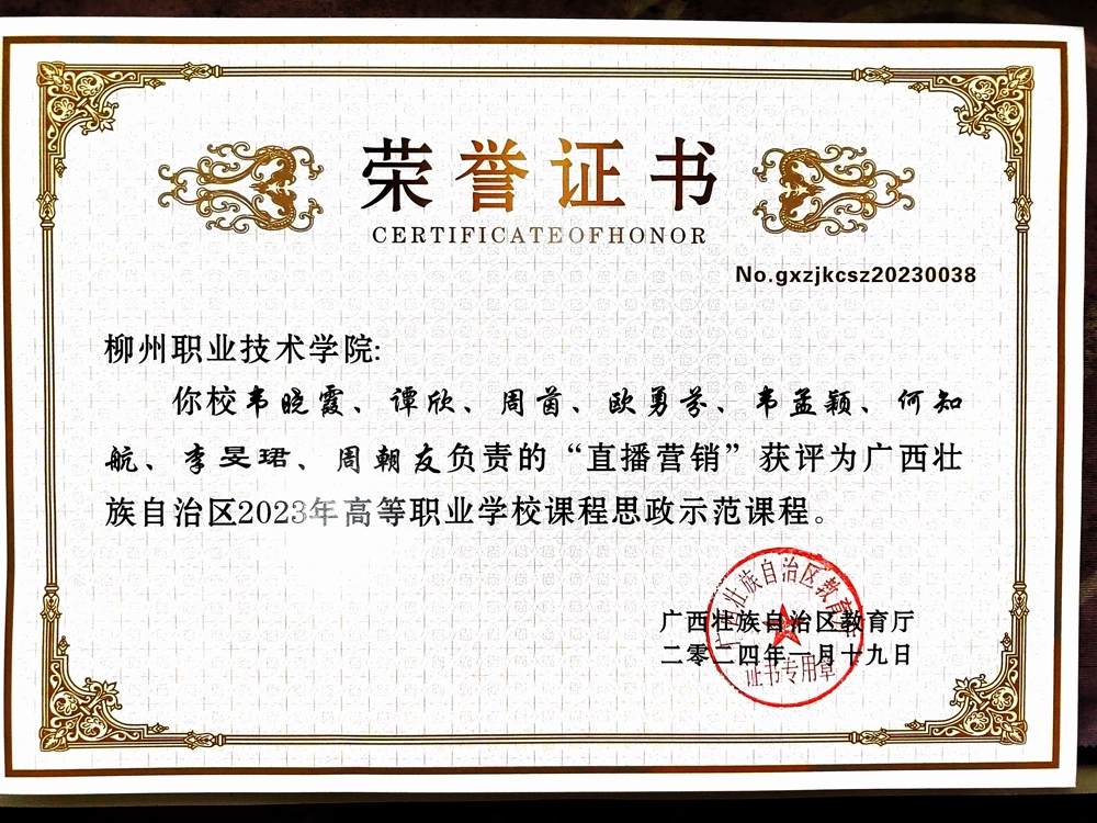 《直播营销》课程获评为自治区2023年高等职业学校课程思政示范课程 来源: 发布时间:2025-05-30 14:51:17 浏览次数: 次 【字体:小 大】 一审:贸旅一审 终审:贸旅三审 分享到: 【打印正文】