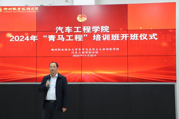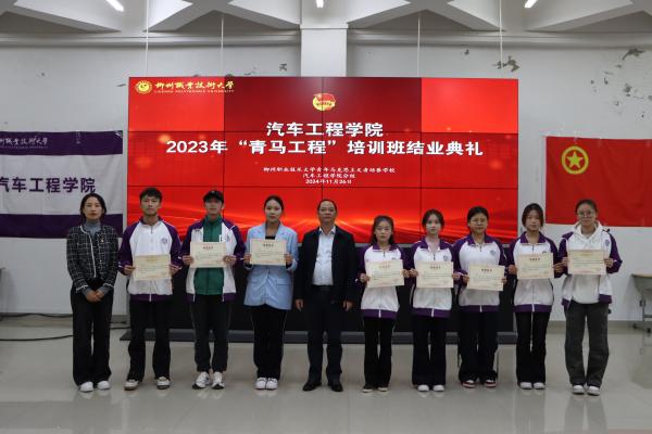新闻网消息(文/汽车工程学院 罗其彬、杨晓 图/汽车工程学院新媒体宣传中心)为深入贯彻习近平新时代中国特色社会主义思想,充分发挥柳州职业技术大学青年马克思主义者培养学校汽车工程学院分校的作用,11月26日晚汽车工程学院在T1-D401成功举办了2023年青年马克思主义者培养工程(简称“青马工程”)培训班结业典礼暨2024年开班仪式。汽车工程学院党总支书记覃宗万、分团委书记杨晓、2024级辅导员甘育露、石付盛及青马学员出席此次活动。