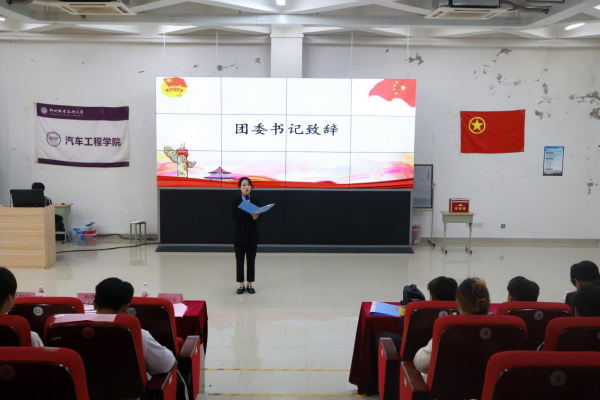 现场秩序井然,气氛庄重而热烈,共同奏响了青春接力、担当续航的激昂序曲。柳州职业技术学院汽车工程学院第八届学生会主席团代表严智深总结了过去一年学生会在各项活动组织、学生服务等方面的成果与经验,鼓励新一届学生会要接继奋斗、秉承“全心全意为同学服务”的工作理念做好老师与学生之间的桥梁纽带,与时俱进,开拓创新,紧扣同学需求,为学院的发展贡献力量。