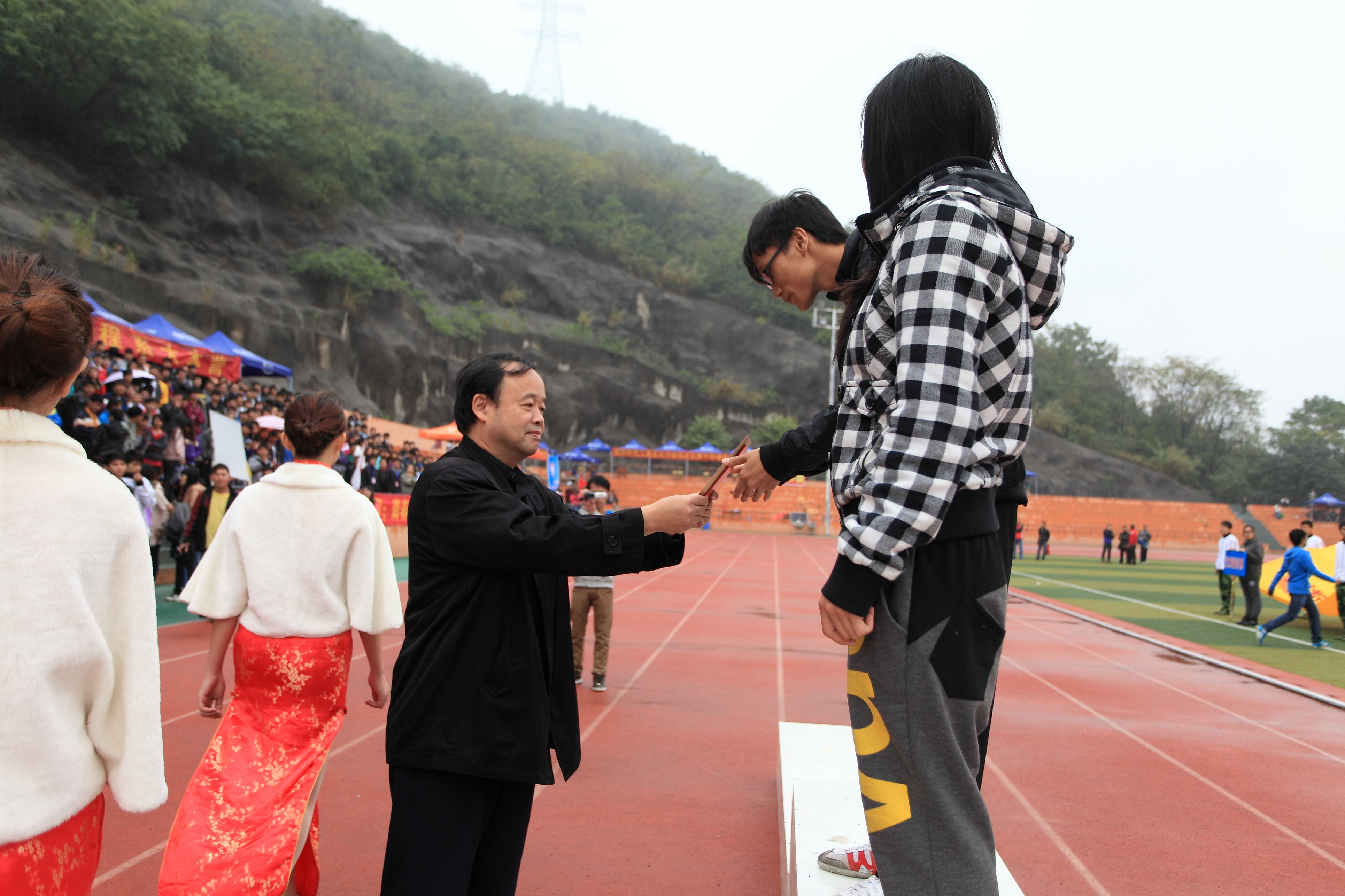 中午时分,冒着零星的雨点,学院领导朱伟才、石令明、阳旭、熊文华、林若森、院长助理敬志轩与各系部领导及全院师生一起出席了闭幕式。此次运动会的总裁判长李培庆向大会宣读了取得优异成绩的单位和个人名单以及破学院纪录的赛项,念到名字的系部不时以兴奋的欢呼声热烈回应;在催人奋进的音乐声中,学院领导分别给获奖的系部及个人隆重颁奖。