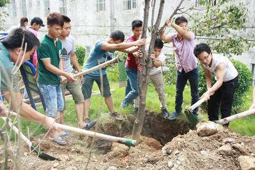 四点半,该系党总支书记杨琳、学生科长唐艳及毕业班辅导员黄贤娇、李嫦与毕业生们一起在坡上明德园3号学生宿舍楼前, 按专业栽下了5棵山楂树。在植树活动中,毕业生们带着对母校的感恩和眷恋,种下了对母校的怀念与感恩,也种下了绿色的希望,希望母校越来越好,也希望自己把根留在母校,今后取得好成绩回报母校。