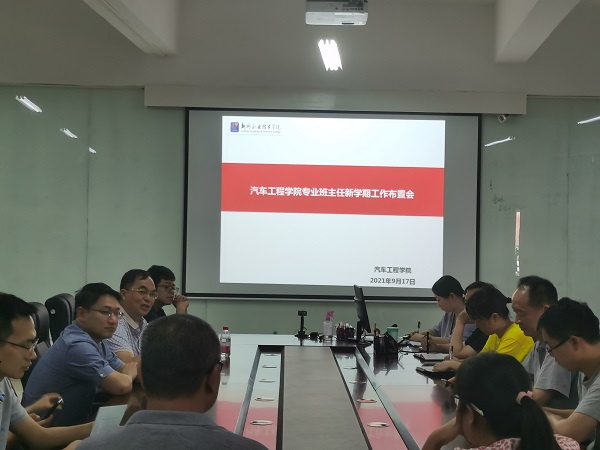 新闻网消息(文、图/汽车工程学院 黄碧莹)为进一步加强学院学生学风建设和班级管理,充分发挥专业教师对学生专业学习和创新、就业、创业指导的优势,做到“三全育人”。汽车工程学院于9月17日下午在T4B506会议室召开了新学期专业班主任工作布置会?;嵋橛裳г貉瓶瞥ぴ局鞒?,学院党总支书记韦耀业和2021级专业班主任出席了本次会议。