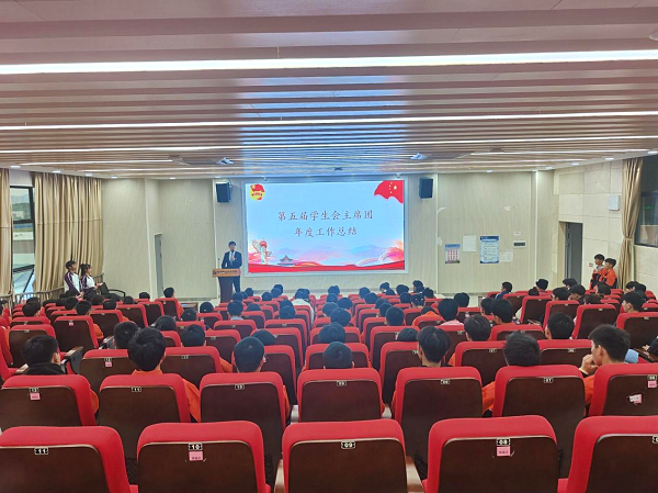 第五届学生会主席团成员吴金熹首先总结了过去一年学生会的工作内容,回顾过去一年学生会取得的工作成绩,并对第六届学生会工作提出要求,希望新一届学生会成员能够团结一心、互帮互助、踏实务实,继承和发扬学生干部先锋带头的模范作用,以优良的工作作风、积极的精神风貌努力发挥好”学生与老师之间的桥梁纽带“,把学生会越办越好。