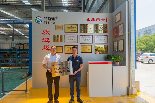 随后,我院与广西特斯途汽车科技有限公司双方达成一致,举行了就业实践基地挂牌仪式。