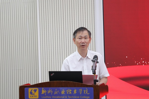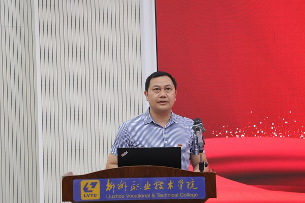 熊开春部长充分肯定了我校党建工作,并在发言中表示,中共柳州市柳东新区工作委员会与柳州职业技术学院党委共建“柳东新区党员干部培训中心”,在双方的通力合作与高效配合下,依托“平台联建”“师资联用”“课题联创”等举措提升办学能力和水平,建立健全共享的师资库、教学专题库和教学基地库,希望全体学员在校园里严肃认真学习党史和党章,严格要求自己,以饱满的热情和优异的成绩迎接党的二十大胜利召开!