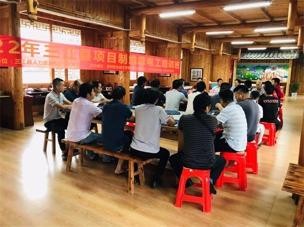 新闻网消息(文、图/汽车工程学院 石黄涛)为进一步贯彻落实党中央、自治区、柳州市乡村振兴工作部署,推进职业教育服务三农,实施技能引领,助力农民致富,充分发挥我校职业教育的优势,我校特面向三江县独峒镇农村劳动人员开展免费低压电工上岗证培训。