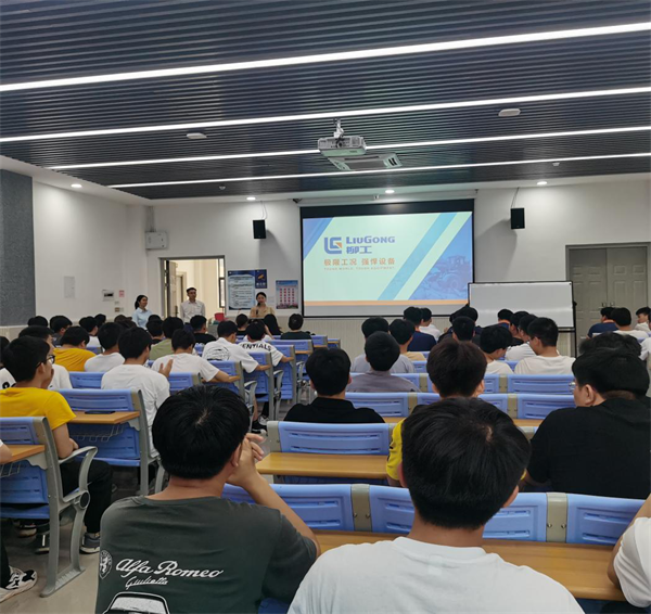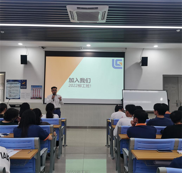 新闻网消息(文、图/汽车工程学院 覃小红 )为了深入贯彻学校“校企合作、深度融合”的指导方针,进一步提升具有工匠精神的“素养?管理?创新”国际化复合型技术服务人才培养质量,强化学生社会实践能力的培养,汽车工程学院与广西柳工挖掘机有限公司合作开设了“柳工班”订单班,并于2022年6月24日下午在T4D201举行了2020级“柳工班”订单班宣讲会,广西柳工挖掘机有限公司服务总监黄光周、技术服务培训专员贺柳絮参加本次宣讲,我院学生科科长曾志、2020级工程机械运用技术专业辅导员及2020级工程机械运用技术专业157名学生参加了此次宣讲会。