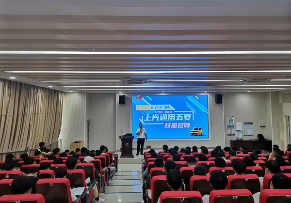 随后,我校2004级汽车3班校友、上汽通用五菱物流区域人事主管、部门工会主席黄君欢从企业精神与愿景、企业文化、管理模式等方面展开宣讲,同时就同学们关心的住宿环境、就餐环境、岗位配置、待遇等问题进行详细的解说。