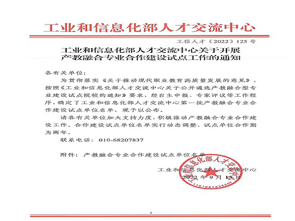 2022年初,为进一步促进工业和信息化领域教育链、人才链、产业链、创新链的有机衔接,紧密对接产业升级和技术变革趋势。工业和信息化部首次在全国范围内遴选并培育一批能发挥引领作用的产教融合型专业建设院校,并针对新一代信息技术、智能制造、新能源汽车、数字化转型等工业和信息化重点工作领域相关专业群进行合作建设。