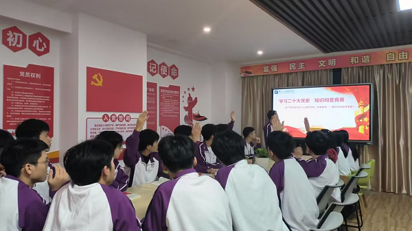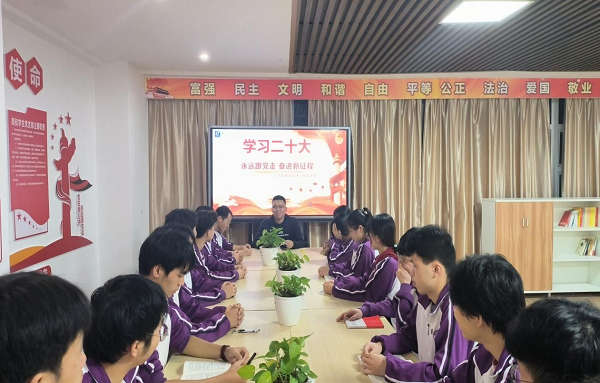 宣讲活动由主题内容学习、小组热议、知识竞赛三个??樽槌伞J紫?,辅导员龙双强以国家安全、科教兴国、文化强国等主要内容展开宣讲,组织学生认真学习党的二十大报告原文。其次,2021汽车智能技术2班团支部全体成员在团支书陶胜会的组织下,以小组为单位对二十大报告原文学习与热议。班级班长刘九洋做了心得分享:“党的二十大报告给人以真理的力量,信仰的感召,方向的指引,奋进的信心,作为一名学生干部,我深刻感受到了习近平总书记对青年人的殷切希望,我们必须坚定不移听党话,跟党走,在专业学习中提升个人技能,在志愿服务中绘出青春色彩,努力成长为有理想、敢担当、能吃苦、肯奋斗的新时代青年。”最后,全体成员在愉快的知识竞赛抢答氛围中结束了本次主题内容学习活动。