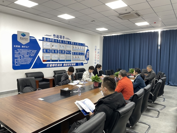 参观完车间后,弗迪人事部门相关负责人与我院教师们进行了会议交流并交换意见。首先,吴星院长向弗迪公司简单介绍了柳州职业技术学院以及汽车工程学院的概况,提出我校机电设备维修与管理专业及汽车新能源汽车技术专业与弗迪电池的用人需求很契合。弗迪电池人事经理陈经理对此想法表示认同,并提出弗迪电池南宁三个基地的建成投产需要大量优秀的人才参与,非?;队?/span>职业技术学院的学生能够参与建设,并表示目前已经在我校开展了校招的流程。此外,吴星院长与陈经理还就校企合作、设立订单班、冠名班以及产业学院的初步想法进行了交流与沟通。最后,吴星院长诚挚的邀请弗迪公司入柳职院实地考察,了解学校及学生的实际情况,有利于双方的交流与沟通,并形成长期的合作关系。