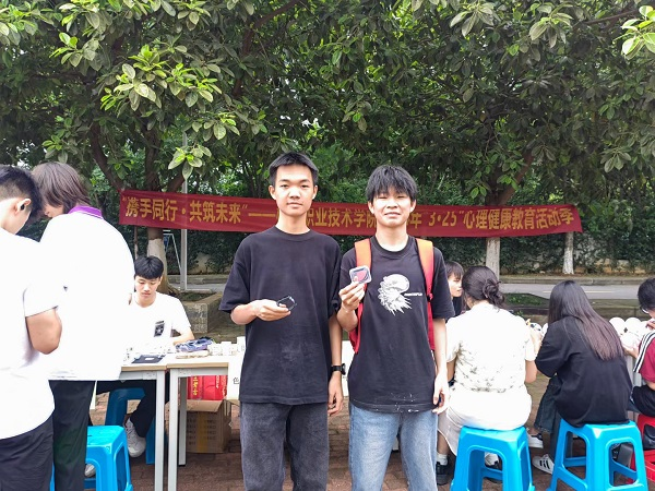 本次心理解压游园活动共设有六个游戏打卡点,分别是:我喜欢这样的我——自我画像、随心所欲来涂鸦、心愿墙、疯狂毛毛虫、色眼识字、一鼓作气?;疃魈庀拭?、内容丰富、形式多样、各具特色。学生们通过现场参与打卡点心理活动,集齐全部印章,并兑换心仪的礼品?;疃殖〔斡肴耸诙?,气氛热烈浓厚,2022级智能网联1班学生白玉鑫开心地说:“这次的心理解压游园活动内容丰富又十分有趣,在放松身心的同时又学会了一些心理知识,还能兑换到自己喜欢的礼品,收获颇多,希望学校能多举办类似活动?!闭獯位疃睦斫】悼破罩?、心理健康特色实践有机融入学生喜闻乐见的游戏环节中,切实增强了心理健康教育吸引力和感染力,是心理健康教育工作的一次创新尝试。