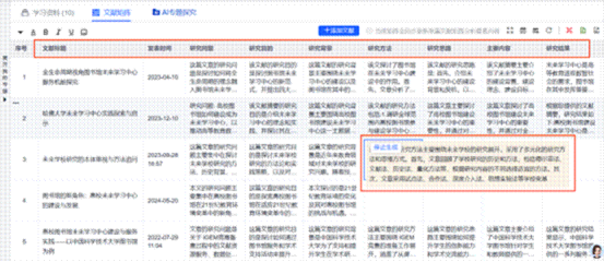 文献矩阵与研读:多篇文献横向对比,一键提取研究要素;渐进式阅读模式分三步速读→精读→进阶追问