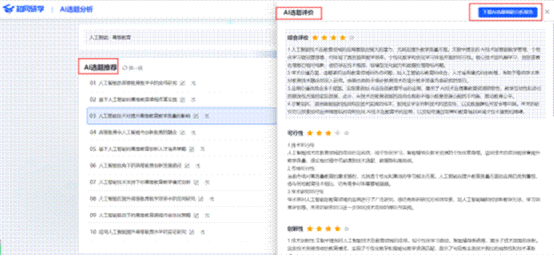 智能选题分析:输入关键词,AI推荐选题方向,并生成研究趋势、学科渗透、关键词共现等可视化报告