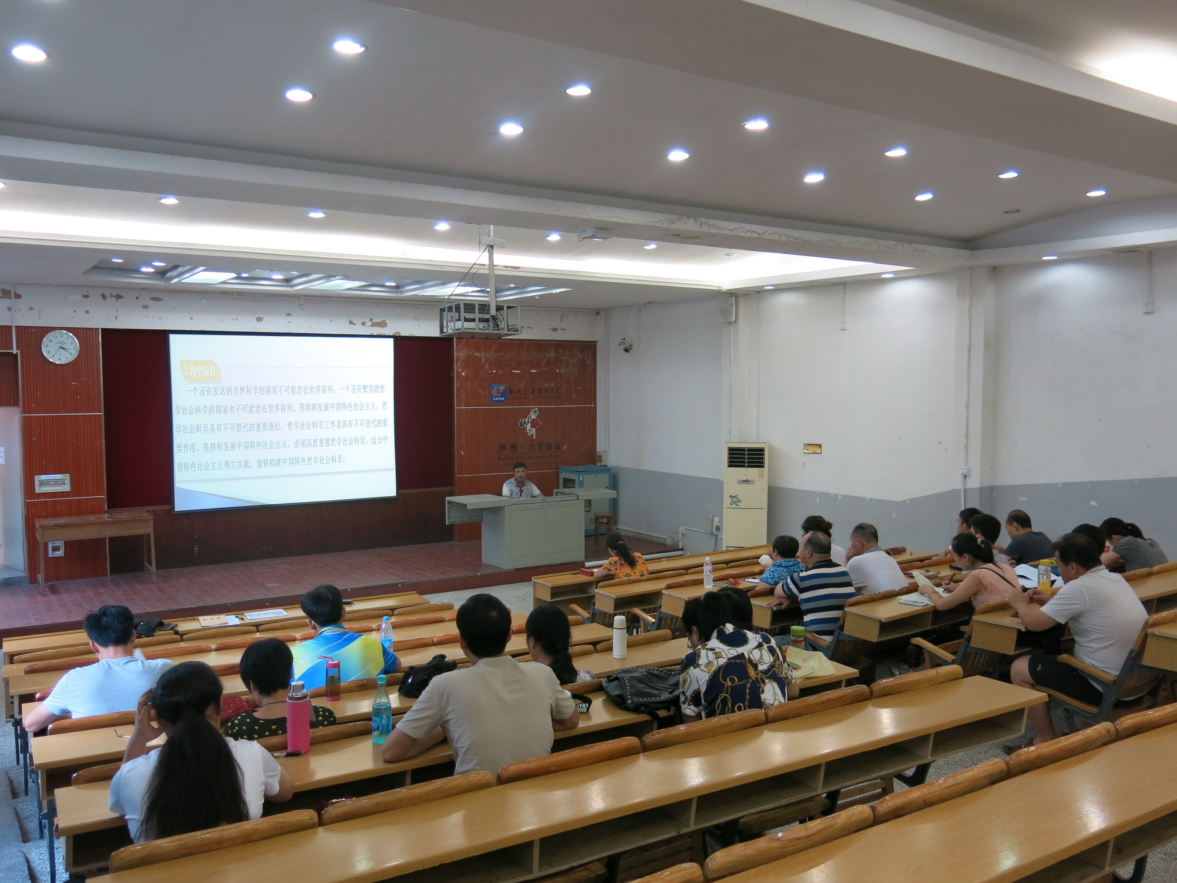 新闻网消息(公共基础部/黄志卫)为深入学习贯彻习近平总书记在哲学社会科学工作座谈会上的重要讲话精神,扎实推进公共基础部、社会科学研究所、德育研究所的哲学社会科学教学与研究工作,按照公共基础部党总支“两学一做”学习教育工作部署,6月24日下午,公共基础部党总支部在德馨楼101教室召开学习习近平总书记在哲学社会科学工作座谈会上的重要讲话精神专题报告会,党总支书记、主任陈芳主持会议,姜献生教授作辅导报告,公共基础部党总支全体党员参加会议。