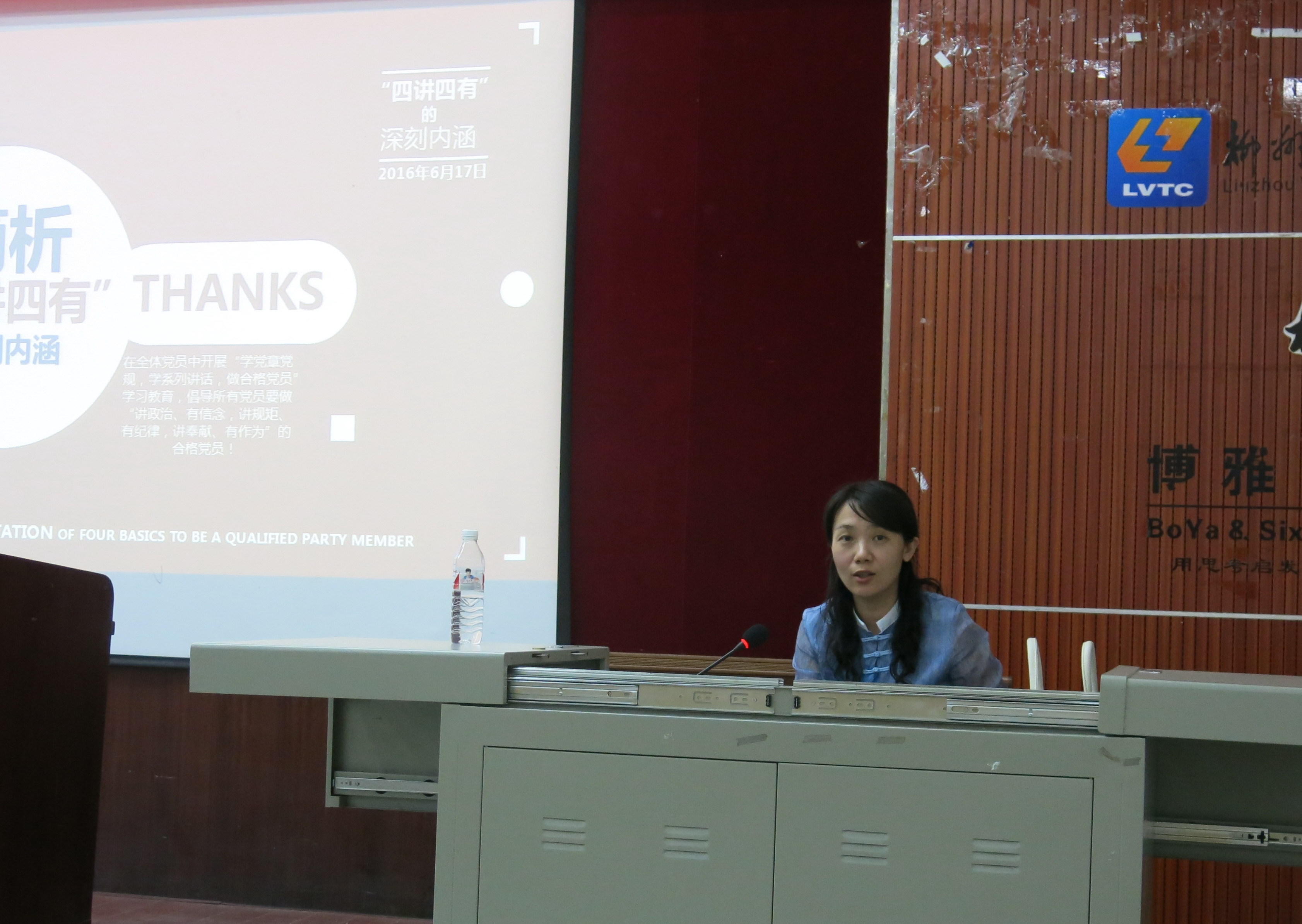 新闻网消息(通讯员/公共基础部 黄志卫 摄影/公共基础部 陈清)6月17日下午,公共基础部党总支部在德馨楼101教室召开“两学一做”学习教育第一阶段“四讲四有”专题学习会,党总支书记陈芳主讲,党总支组织委员黄志卫主持会议,公共基础部党总支全体党员参加。