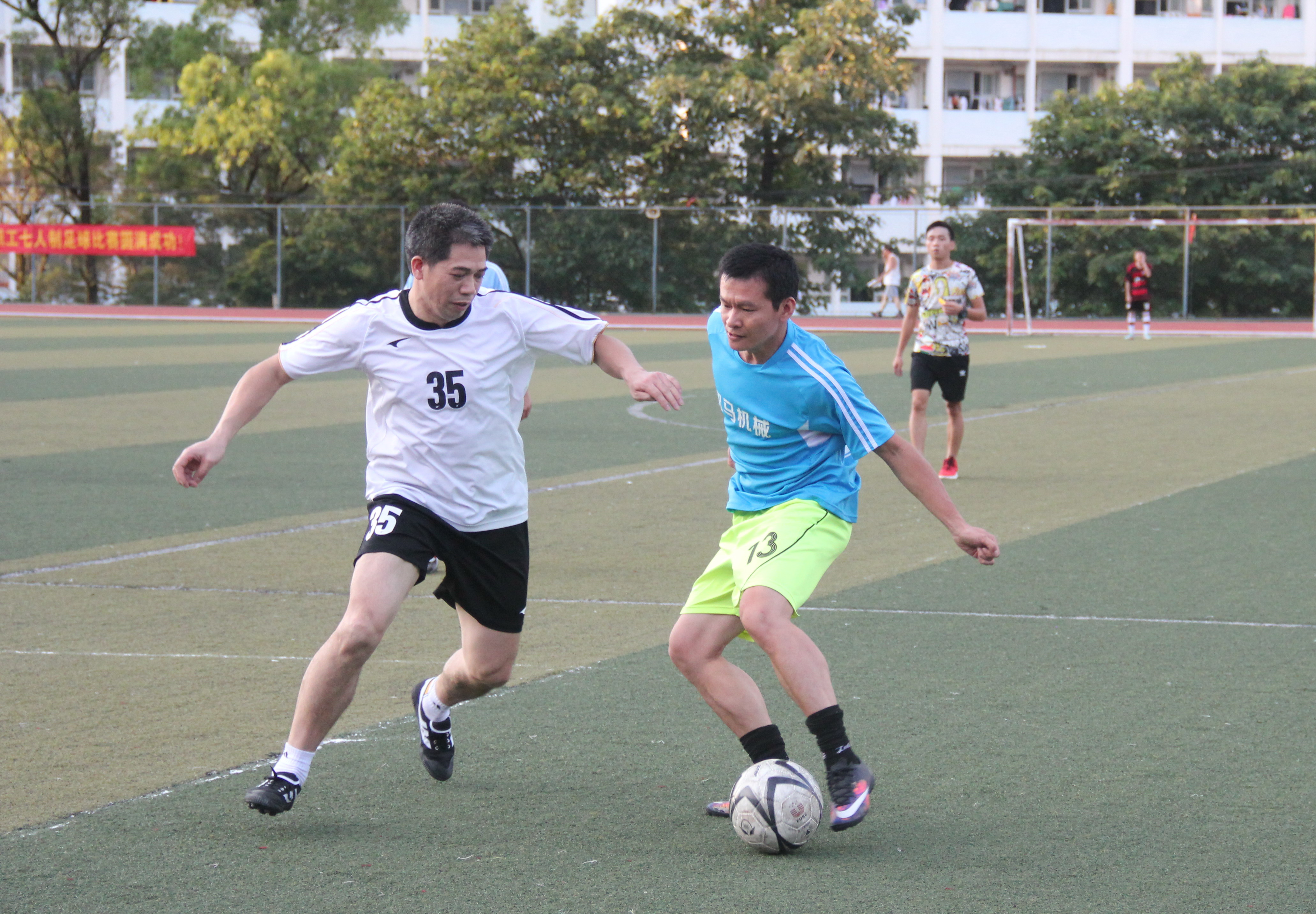 在另一块场地上同时进行的另一场比赛中,五系联队以4:2战胜艺术设计学院教工队。最终机电教工队、五系联队、公共基础部教工队分获本届比赛的冠、亚、季军。至此,学院第四届教职工七人制足球联赛圆满落幕。