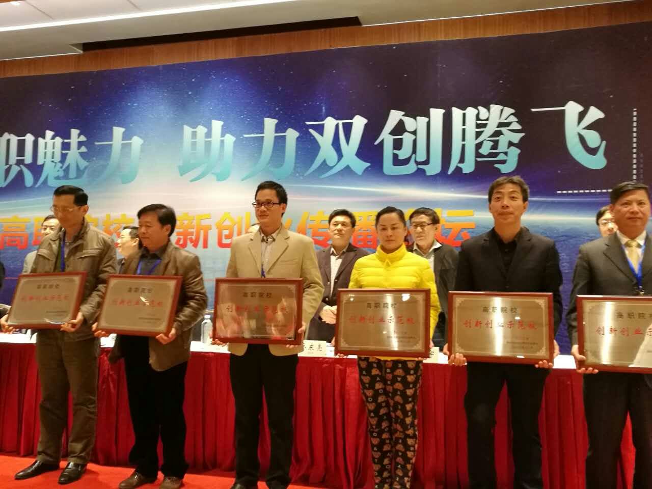 许明教授(右三)代表我校接受“创新创业示范校”牌匾