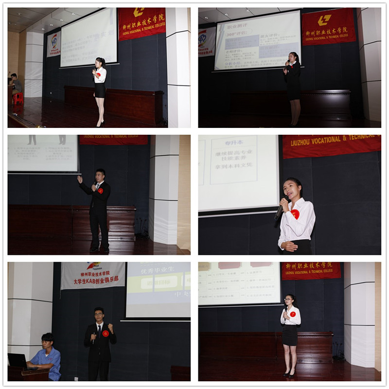 新闻网消息(通讯员/基础部 韦柳钰、大学生KAB创业俱乐部 何晓燕)大学是一个新的起点,新的篇章,我们应该规划好属于自己的未来,展开人生职业生涯规划的第一篇章。为了全面普及职业生涯规划知识,引导大学生树立正确的成才观、就业观,加强大学生的职业规划意识,帮助大学生科学地规划自己的职业生涯,学院举办了2015年大学生职业生涯规划大赛,大赛由素质教育基地主办、大学生KAB创业俱乐部承办。经过了预赛、复赛的层层选拔,12名来自各系的优秀选手于5月8日下午在学院本部行政楼100报告厅进行了本次大赛的最后一轮角逐。