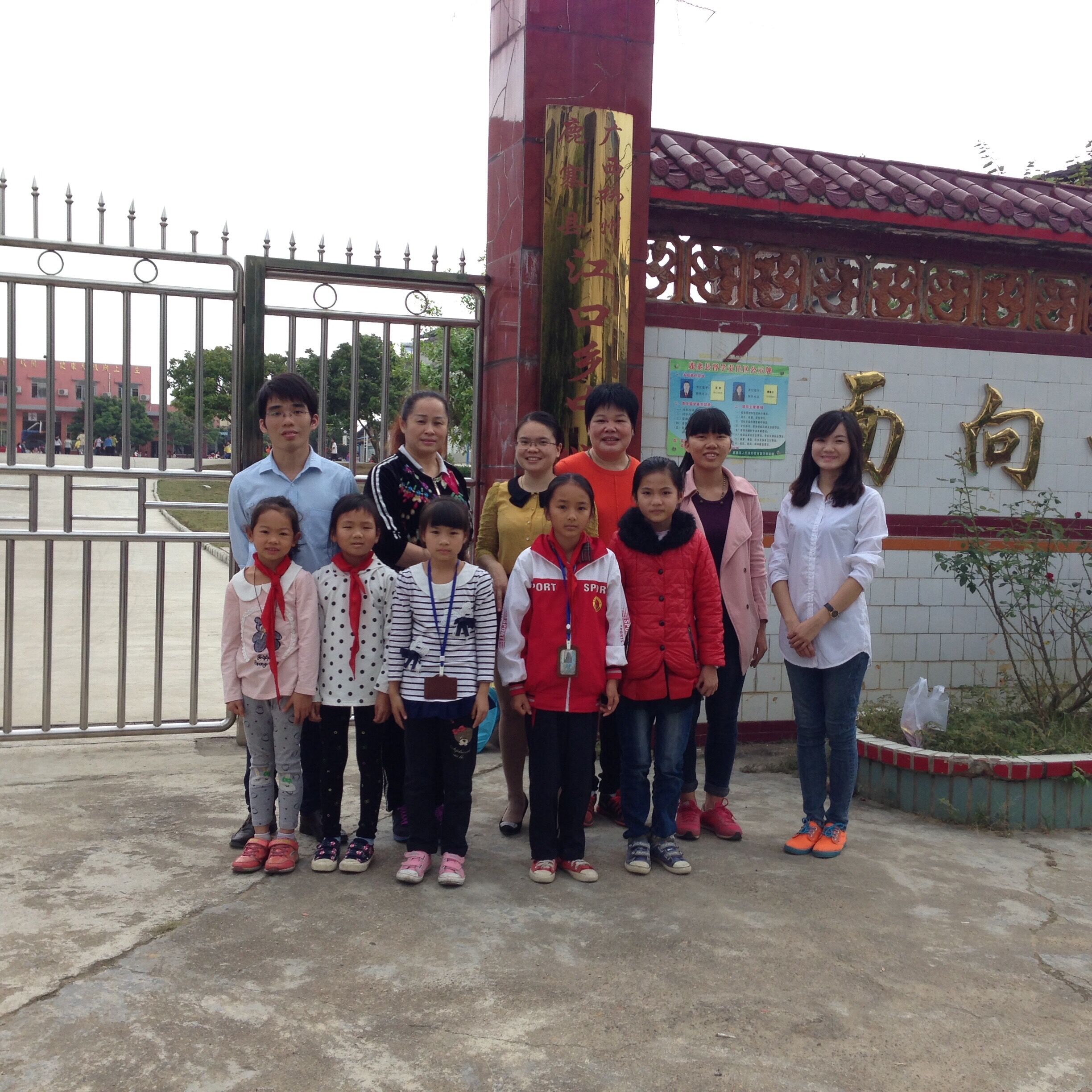 志愿者与江口乡中心校师生合影
