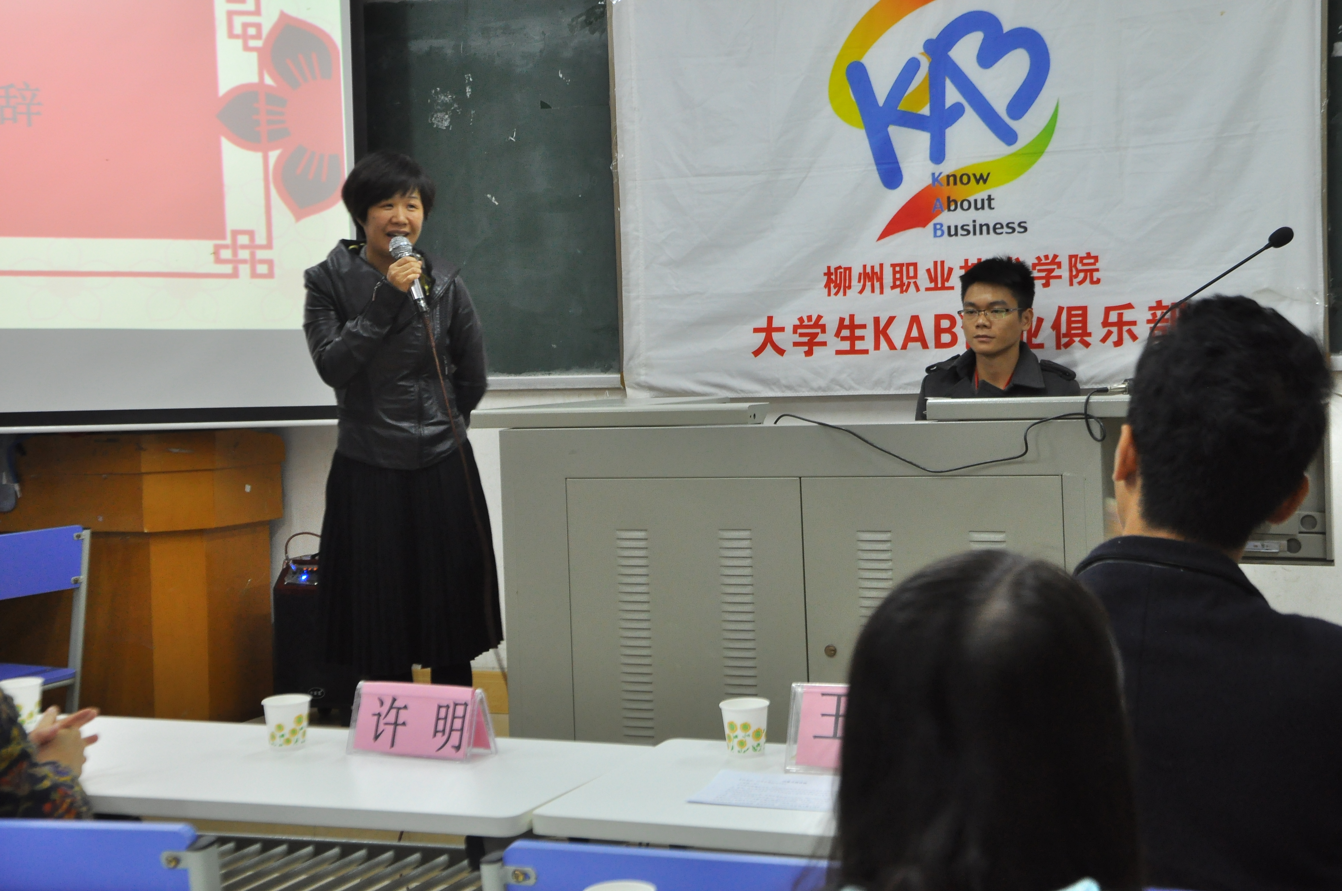 11月9日上午,在学院A区举行的该活动开幕式上,学院党委宣传部部长左妮红、公共基础部副主任李革、陈芳,学院团委周虹老师、大学生KAB创业俱乐部指导老师许明教授,学院学生会、社团联、青年服务总队的代表团队、大学生KAB创业俱乐部大一新会员和20个参赛团队参加了本次活动。