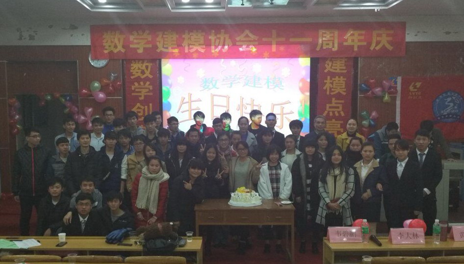 新闻网消息(通讯员/公共基础部 韦碧鹏、数模协会 韦鹤鸿 摄影/钟广彬、韦碧鹏)12月20日晚,我院数学建模协会在德馨楼101教室举行了十一周年庆典晚会,数学建模协会指导老师、公共基础部高职数学教学团队负责人韦碧鹏,高职数学教学团队李大林教授、黄艳华老师出席,各系部、各社团代表以及数模协会全体成员近110多人参加。