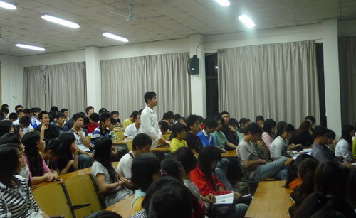 2010年4月21日晚,公共基础部高职英语教学团队韦鸿发老师在社湾校区思贤楼举行了有关托业桥考试的知识讲座,讲座受到了学生们的热烈欢迎。应广大学生要求,4月28日,韦鸿发老师增开了一场托业桥考试知识讲座。