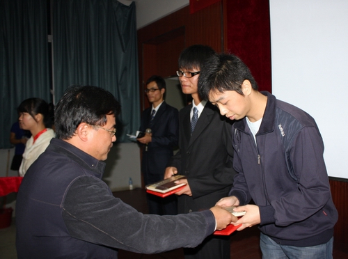 2010年“外教社”杯全国英语演讲比赛柳州职业技术学院初赛于11月6日拉开序幕,经过激烈的角逐,共有十名选手从近百名参赛选手中脱颖而出,入围全院总决赛。总决赛分为命题演讲和评委提问两个环节,演讲题目为《我最关心的……》。在命题演讲环节,参赛选手用英语流畅地讲述着自己最关心的问题,与在座的每位嘉宾、评委及众多听众分享他们的见解,个个朝气蓬勃、热情洋溢;在评委提问环节,参赛选手充分发挥自己的聪明才智,巧妙的回答博得观众们阵阵掌声。在比赛中,主持人还带动大家猜单词、猜歌名和演唱英文歌曲,同学们踊跃参与,整个赛场洋溢着学习求知带来的欢乐气氛。经过评委们认真评审,最后韦富天、沈志两位同学获得一等奖,经过培训后,他们将代表我院参加全区复赛。