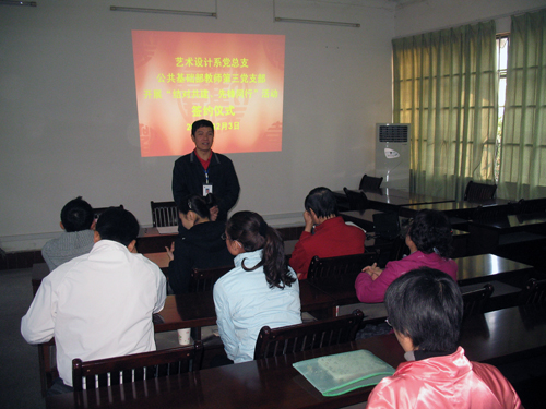 2010年12月3日,为建立院内基层党组织之间互帮互助机制,结合工作实际需求,搭建好高校党建协调发展的新平台,艺术设计系党总支与公共基础部教师第三党支部开展“结对共建,先锋同行”活动。