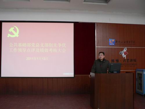 2011年1月13日下午,公共基础部党总支部召开创先争优工作领导点评大会?;嵋橛傻匙苤榧墙咨鞒?,学院创先争优活动领导小组联系点领导、院党委委员熊文华副院长和全体党员教师出席了会议。