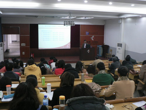 讲座中,姜献生教授通过传统教学和现代教学的对比,结合高职教育的特点,分别从教师和学生的角度分析了教与学的应有内涵及要求,同时介绍了研究性教学的涵义、来源和理论基础,分析了研究性教学支持系统,详细介绍了研究性教学过程中教师的教学方式和学生的学习模式特点。结合我院的实际,姜献生教授介绍了自己对研究性教学在高职院校公共基础课程中实践的思考。针对教师对高职教育开展研究性教学存在的一些认识误区,他指出,开展研究性教学的关键不在于我们的学生有没有进行研究性学习的能力,而在于我们的教师有没有进行研究性教学的观念、意识、态度和能力,教师既需要知道教给学生什么,更需要知道怎样教给学生,教师在教育中应该是思想塑造者、道德引导者、智慧开发者、心灵开拓者、情感塑造者、行为训练者、知识解读者和能力传递者。最后姜献生教授指出“正确的理念是提高自身素质的前提!勤于学习和实践是提高自身素质的关键!给人一杯水,自有一桶水!不光会给水,更要会教学生怎么找水源、怎样挖水井!” 研究性教学对教师自身素质提出了更高的要求,他要求全体公共基础课教师更新教学观念,在科研能力、教学能力和实践能力、教学艺术等方面努力完善自己,将课内讲授与课外实践、教师引导与学生自学、阅读教材与思考、探究问题有机结合并达到完整、和谐、统一,完成学科教师向教育专家转变。