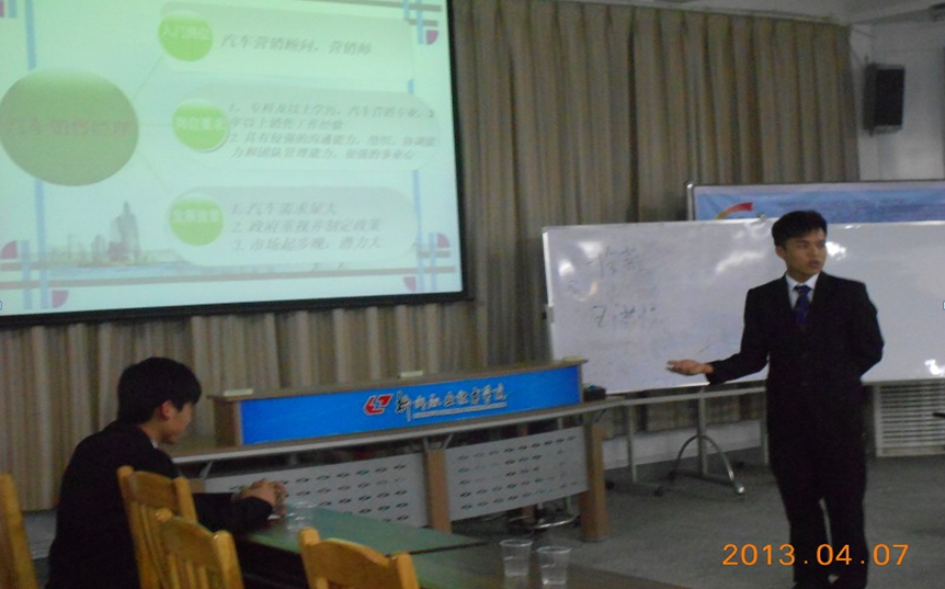 2013年4月7日晚,我院素质教育基地大学生KAB创业俱乐部在招生就业处3楼举行了“大学生职业生涯规划大赛”俱乐部内部选拔赛。素质教育基地高职学生心理与就业课程教学团队负责人、就业与创业训练中心主任许明教授、KAB创业俱乐部会长及社团各部门理事担任此次选拔赛的评委。