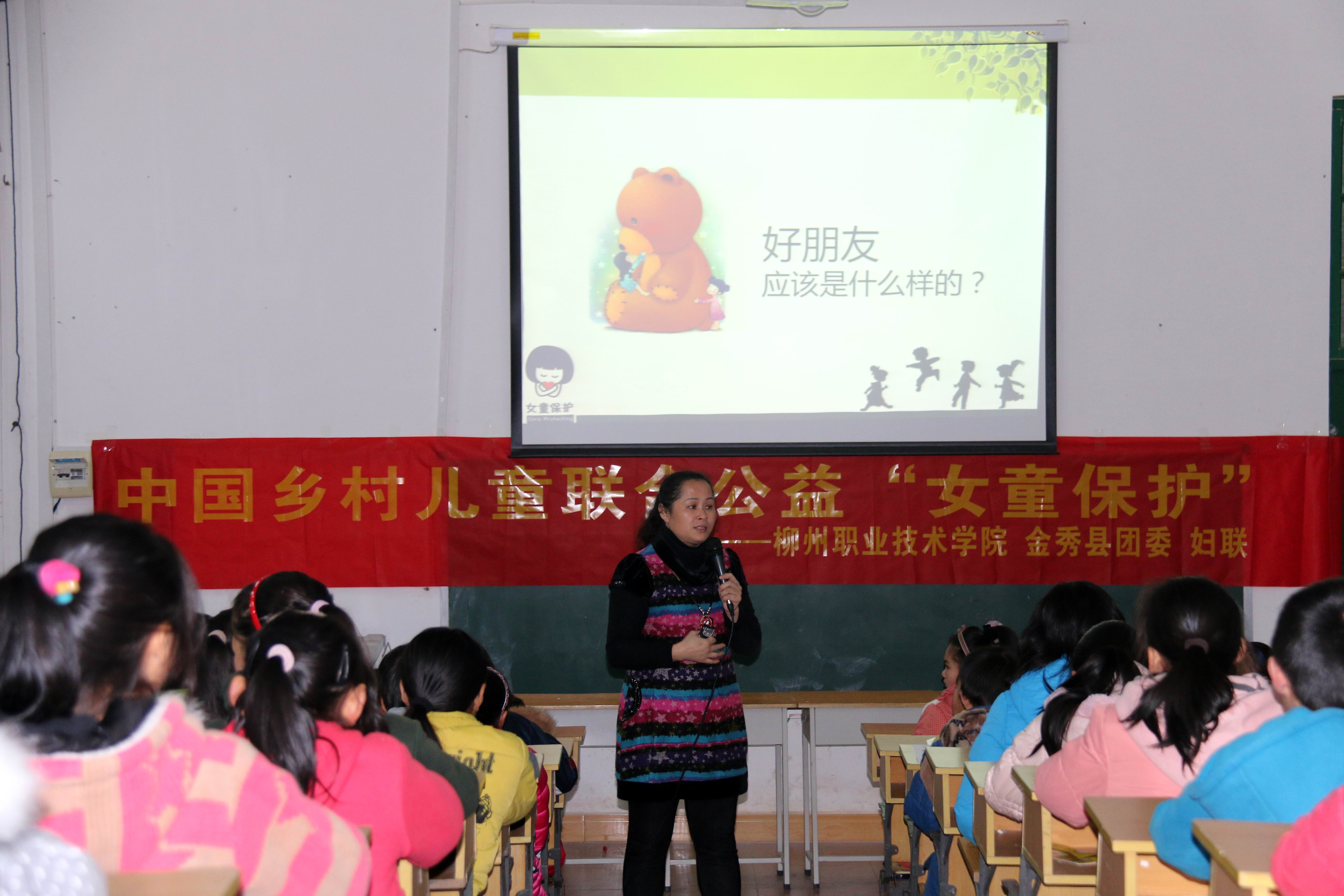 新闻网消息(通讯员 公共基础部 许明)为了增强孩子们的安全意识、提高防范能力,2015年2月3日,应金秀瑶族自治县团委和妇联的邀请,在团县委和金秀武警中队领导的陪同下,柳州职业技术学院“女童保护”项目广西志愿者学院副院长鞠红霞教授、公共基础部心理与就业教学团队负责人许明教授、保卫处副处长钟旭、环境与食品工程系副书记王静一行前往来宾市金秀县共和小学和民族小学开展儿童防性侵害知识宣传活动。