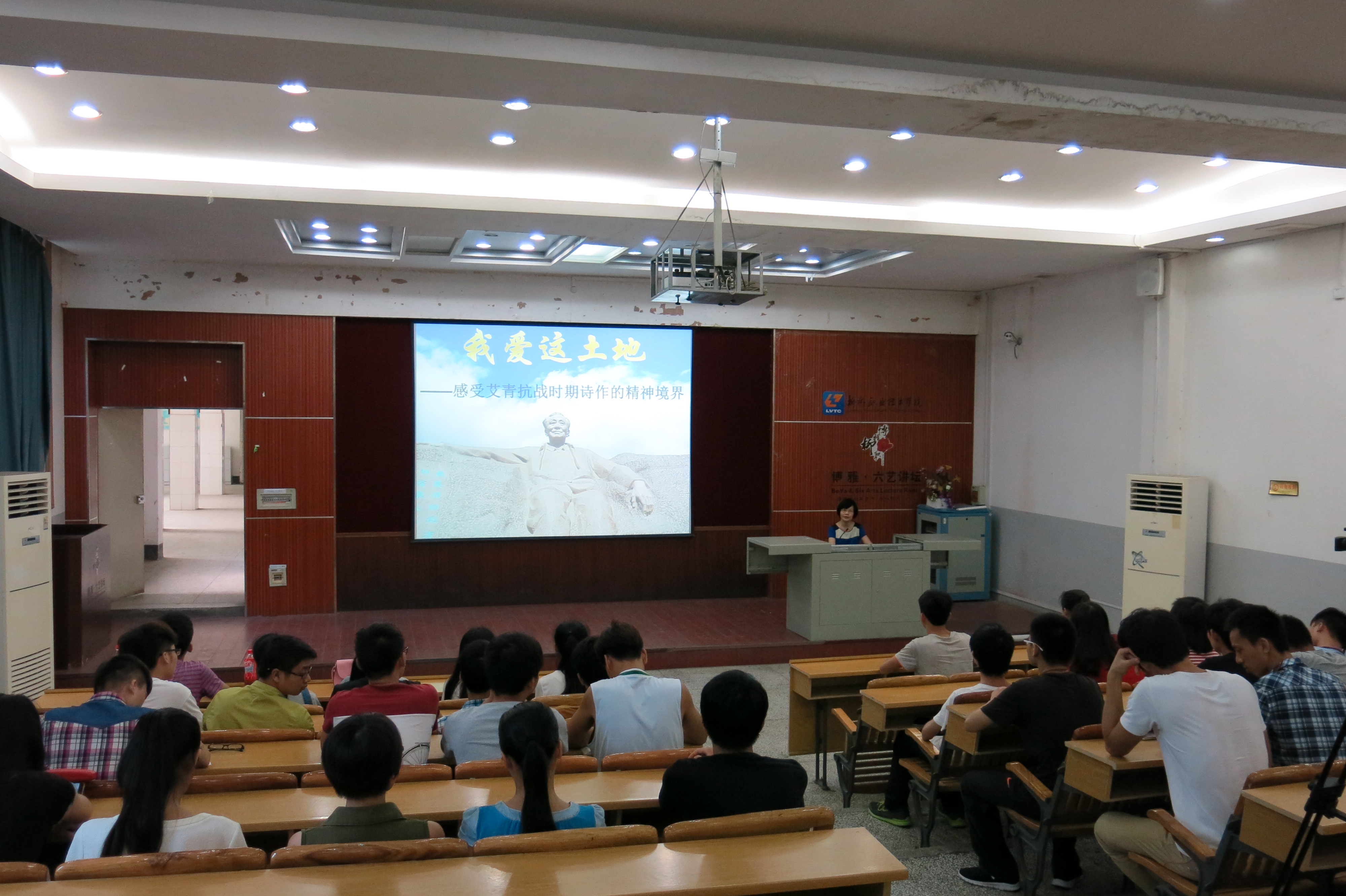 今年是世界反法西斯战争取得胜利70周年,也是中国人民抗日战争取得胜利70周年,为此,我院素质大讲堂计划开办纪念这个伟大胜利的系列讲座,《我爱这土地——感受艾青抗战时期诗作的精神境界》即为系列讲座中的第一讲。学院举办此类纪念活动,旨在让同学们铭记历史、不忘国耻,激励同学们为强国富民而努力,为实现中国梦而奋斗!