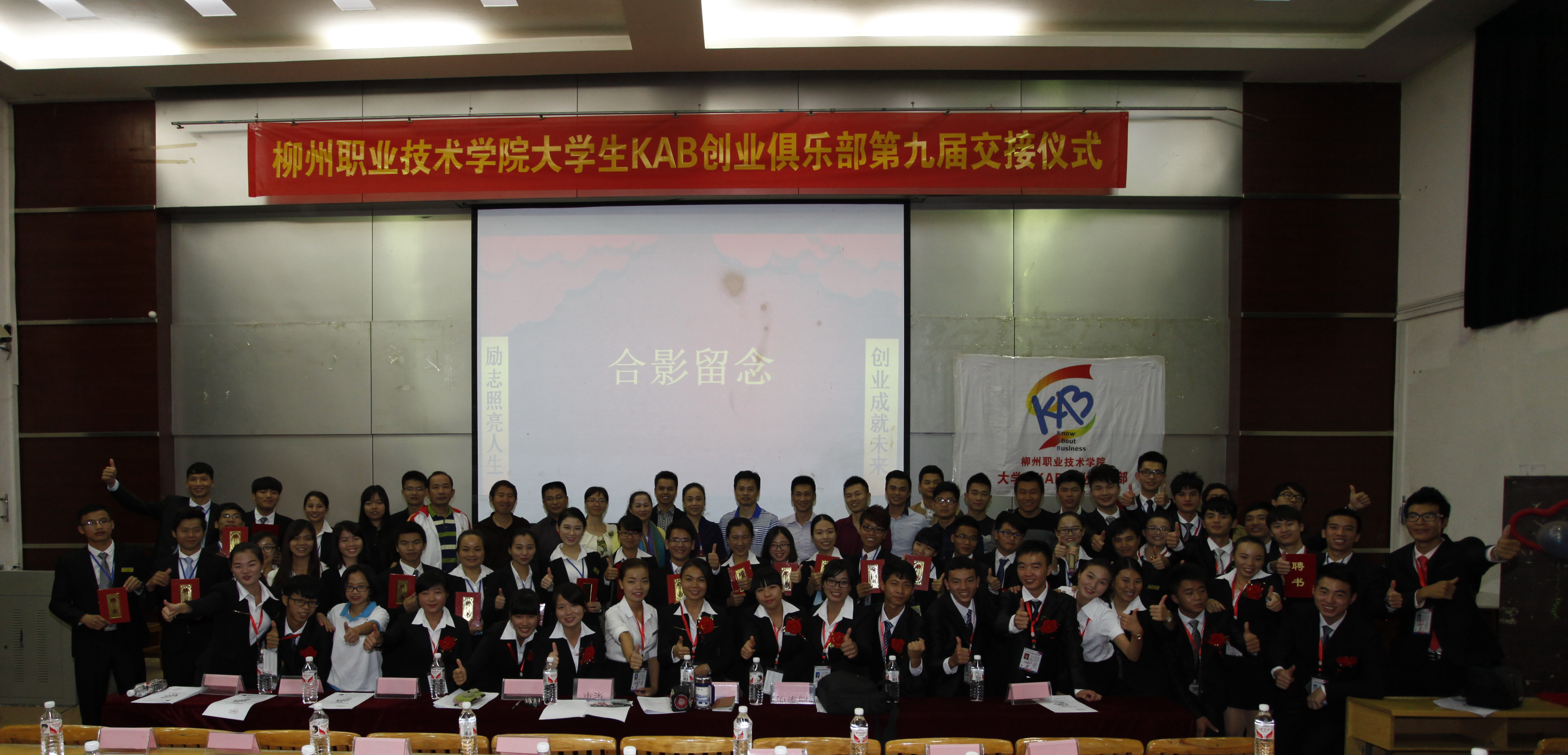 新闻网消息(通讯员/公共基础部 黄志卫 大学生KAB创业俱乐部 李杰鑫)10月12日下午,我院大学生KAB创业俱乐部第九届理事会交接仪式在博闻楼101教室举行。出席本次活动的领导、嘉宾有:柳州巿人才办科长梁革、柳州市创业投资协会、柳州巿青年企业家代表、学院招生就业处处长黄莉、教务与实训管理处处长韦林、后勤与财务处处长邓亮顺,公共基础部副主任陈芳、李革以及院团委、各系部的领导、老师;学院社团联、学生会、各兄弟社团代表、大学生KAB创业俱乐部第一届到第七届在柳州工作的前任理事以及部分大一新生参加了交接仪式。