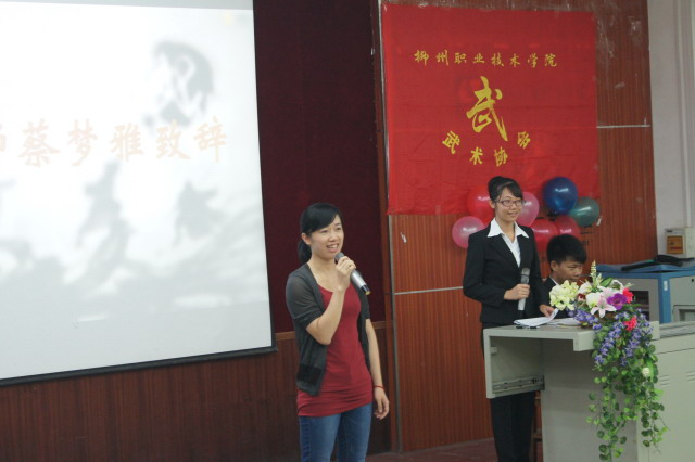 蔡梦雅老师在致辞中深情回顾了社团成立十三年来的风风雨雨,鼓励新任理事要积极主动创造性地开展工作,把武术协会打造成为校园的“精品社团”,指导老师的发言让同学们感到了满满的爱与感动。