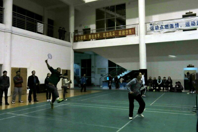 赛前,各支队伍仔细分析对手特点及可能的排阵,精心安排各队队员出场顺序,商议面对不同对手的打法;比赛中,运动员们奋力拼搏、竭尽全力为集体争光;赛场上,白色的羽球时而轻盈如小鸟、时而迅捷似飞箭,令人目不暇接、眼花缭乱。队员们高超的球技、精彩的对决赢得了观众们的敬佩和掌声。清脆的击拍声、啦啦队的呐喊声让激情在体育馆中燃烧。最后机电工程学院以3:1战胜公共基础部赢得冠军,电子信息工程学院以同样的比分战胜艺术设计学院获得第三名。赛后,校工会覃继武副主席为四强队伍颁发了奖金。