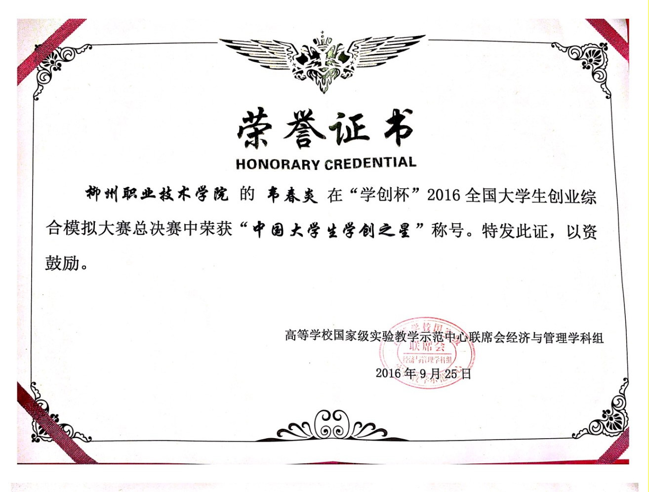 三名选手荣获“中国大学生学创之星”称号