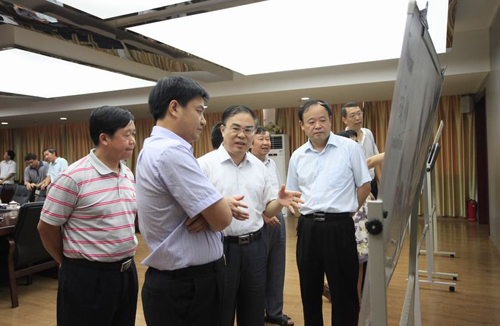 2012年8月30日下午,柳州市刘健生副市长(左2)在市教育局、市发改委、市财政局、柳东新区等部门同志的陪同下莅临我院深入开展调研工作。