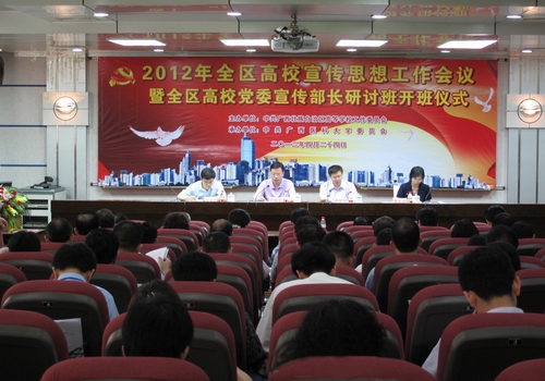 2012年4月24日,2012年度全区高校宣传思想工作会议在广西医科大学召开。自治区高校工委副书记莫锦荣,自治区高校工委宣传部副部长、教育厅思政处副处长李美清,自治区高校工委宣传部副部长、教育厅思政处副处长唐春燕等相关领导及全区各高校宣传部部长和代表近200余人参加了会议。