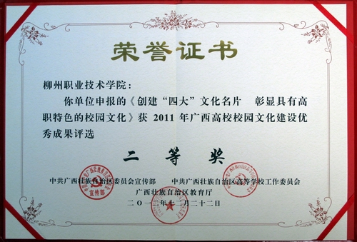 我院获得2011年全区高校校园文化建设优秀成果二等奖
